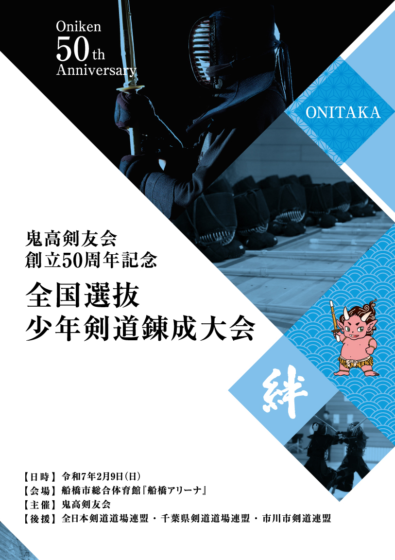 詳細検索 大会結果 (入賞履歴) 2026/01/03 鬼高剣友会創立50周年記念大会 お知らせ 2025/03/11 令和6年度千葉県道連全国強化錬成会【主催 鬼高剣友会】 大会結果 (入賞履歴) 2021/10/12 鬼高剣友会創立45周年記念 東日本選抜少年剣道錬成大会 お知らせ 2019/07/10 鬼高剣友会夏期錬成会 お知らせ 2018/07/09 鬼高剣友会夏期錬成会 大会結果 (入賞履歴) 2017/09/06 鬼高剣友会秋季(低学年)錬成会 お知らせ 2015/07/06 鬼高剣友会夏期錬成会 大会結果 (入賞履歴) 2015/03/18 鬼高剣友会創立40周年記念大会 40周年記念大会 2014/10/22 鬼高剣友会 創立40周年記念大会 第二回案内状を送付いたしました 40周年記念大会 2014/08/09 鬼高剣友会 創立40周年記念大会 開催のご挨拶 お知らせ 2013/07/18 鬼高剣友会夏季(ミニ)錬成会 剣道体験教室 2024/03/26 春の体験会🌸開催のお知らせ 次ページへ »
