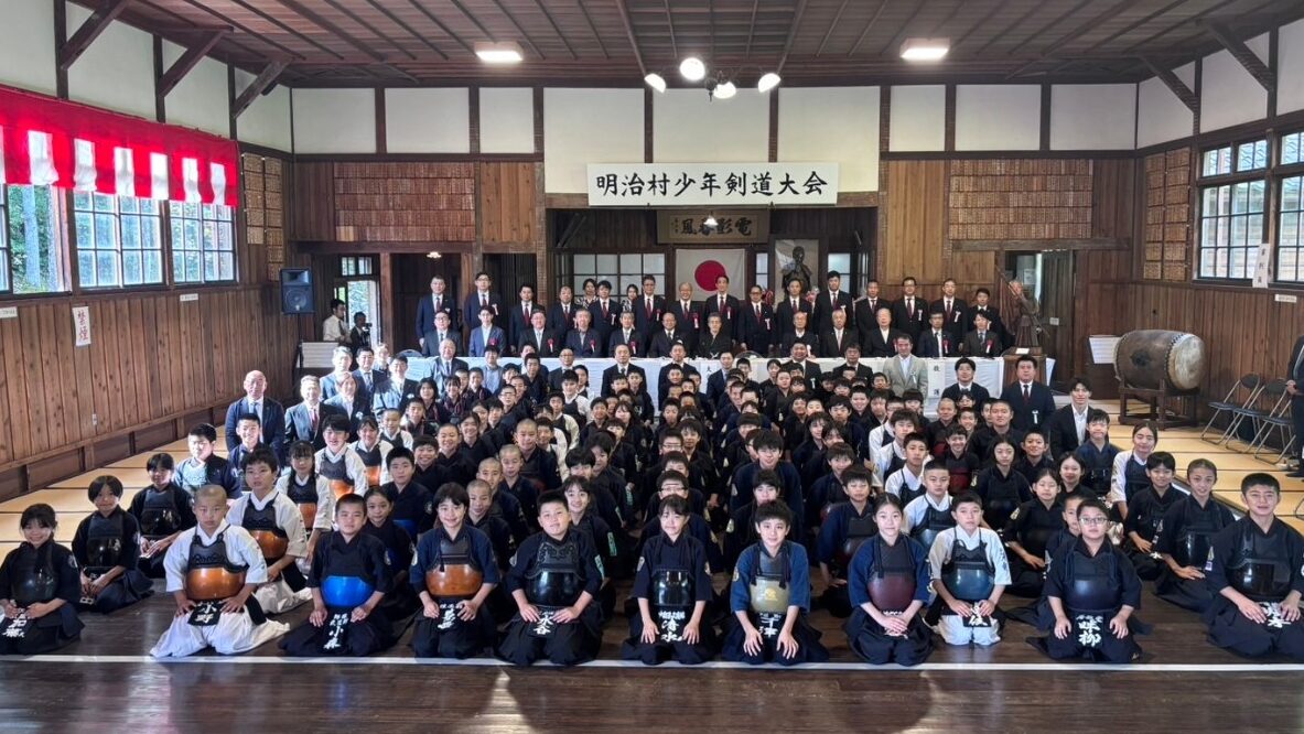 お知らせ 投稿日:2026.01.02 第8回 明治村剣道大会 日時∶令和6年10月27日(日) 会場∶明治村無声堂 小学生団体戦三位🥉∶翔大•渉•陣平•珀人•悠雅•那智(中村先生) 会場の無声堂は、大正時代に建てられた武道場を移築したもので、国の重要文化財に指定されています。 前に戻る