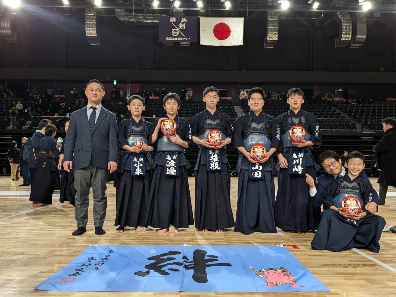 大会結果 (入賞履歴) 投稿日:2026.01.03 第14回 からっ風達磨争奪剣道大会 日時∶令和7年1月11日(土) 会場∶オープンハウスアリーナ太田 高学年団体戦優勝🏆 翔大•渉•陣平•雄也•珀人•悠雅(中村先生) 中学生団体戦敢闘賞 耀陽•晴留•魁人•陽仁•快斗•悠人(権瓶先生) 低学年個人戦準決勝🥈 斎藤那智 1月の全国行事として定着した『からっ風大会』木村先生にはいつも大変お世話になっています。 前に戻る