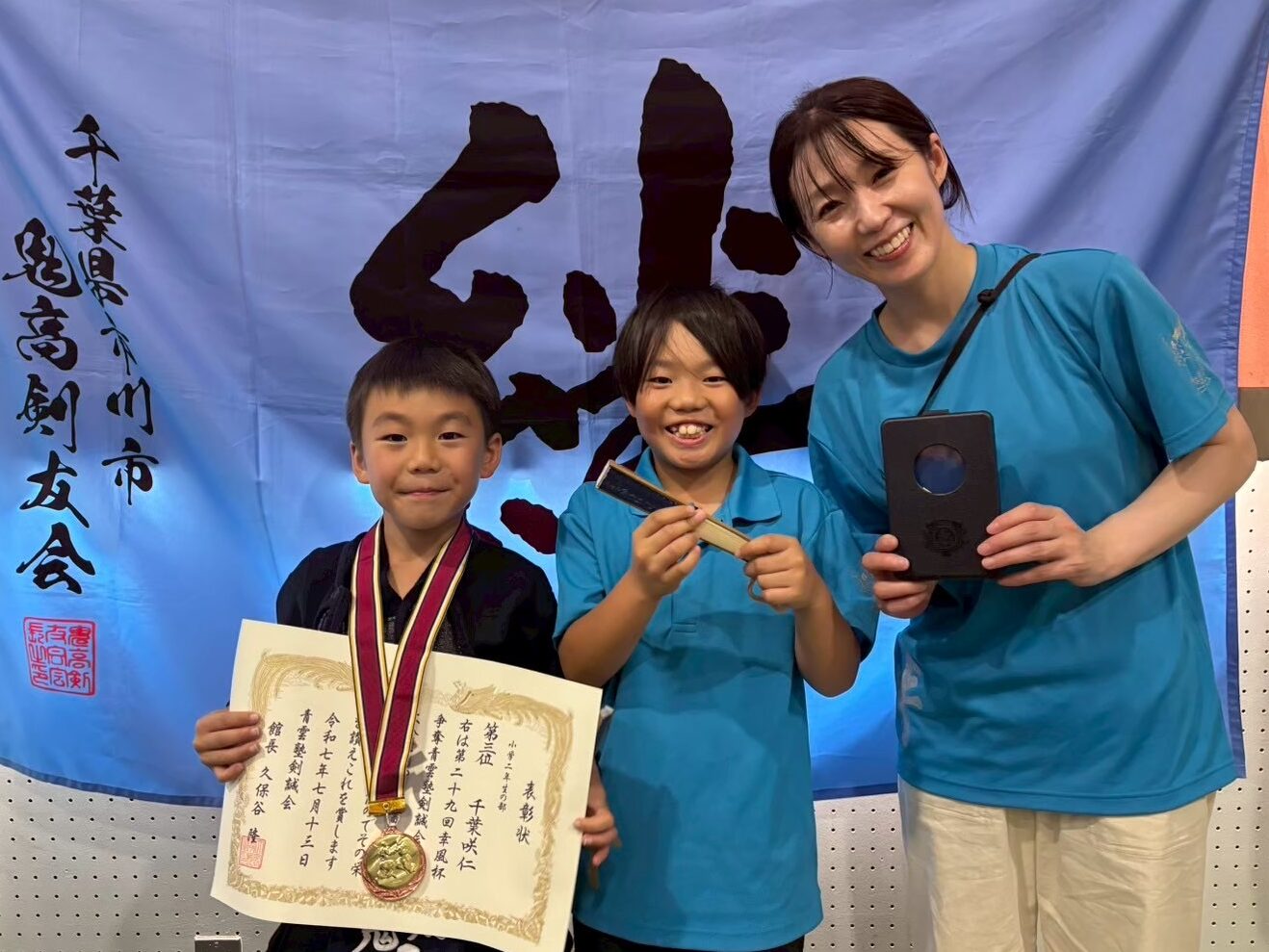 大会結果 (入賞履歴) 投稿日:2026.01.06 幸風杯青雲塾剣聖会剣道大会 日時∶令和7年7月13日(土) 会場∶古河市ゴヨーふれあいSC <学年別個人戦> 4年生 優勝🏆 仮屋薗尊 3年生 三位🥉 麻生秀明 2年生 準優勝🥈 権瓶練人 2年生 三位🥉 千葉咲仁 みんな家族とパチリ📷お父さん、お母さん感謝しています。🙇♂️ 前に戻る